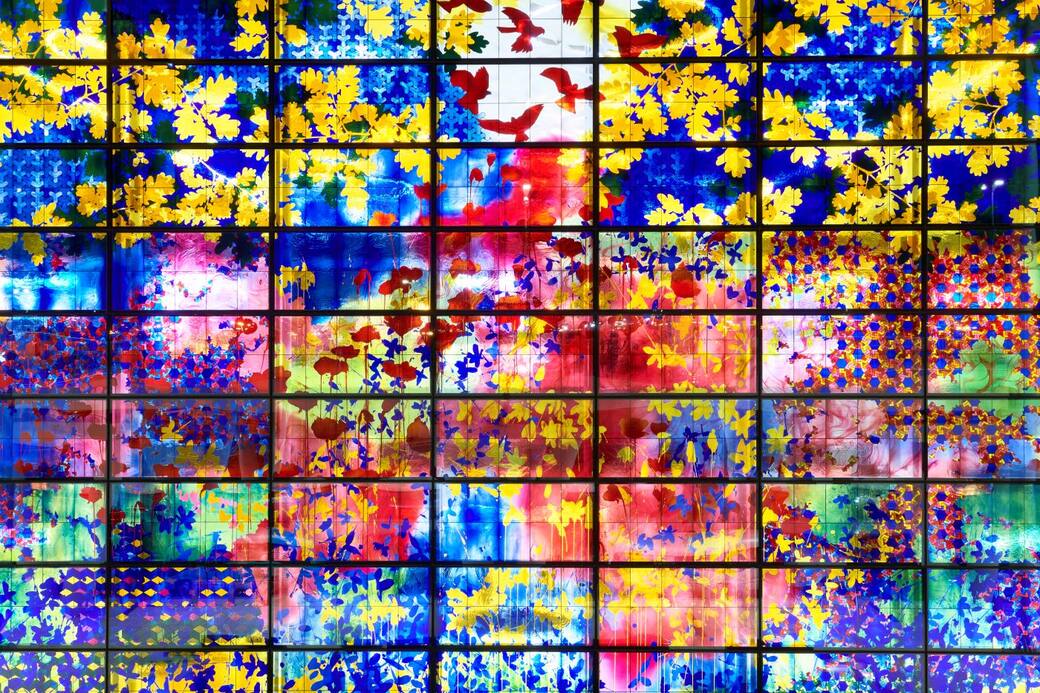 Una delle più grandi installazioni in vetro colorato al mondo è in un aeroporto